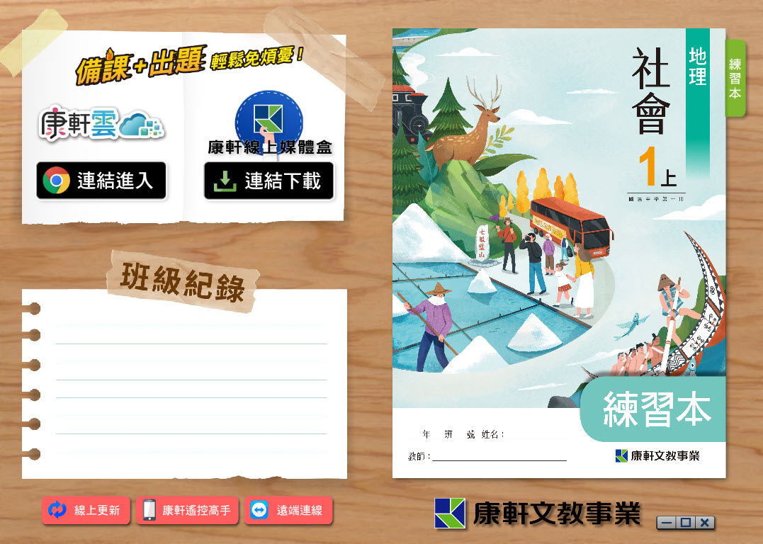 112學年上學期 國中 康軒版 地理 練習本電子書 1年級 教學光碟