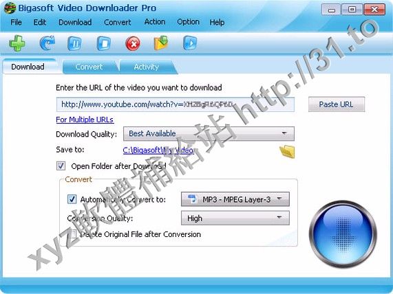 Bigasoft Video Downloader Pro 是一款可以幫助你下載Youtube網絡視頻的工具軟件,你開啟程序後,只需要複製視頻網址,程序會自動檢測,下載後的視頻還可以自動轉換成其他視頻文件格式,支持市面上大多數的流行視頻文件格式!並支持剪輯視頻的功能!