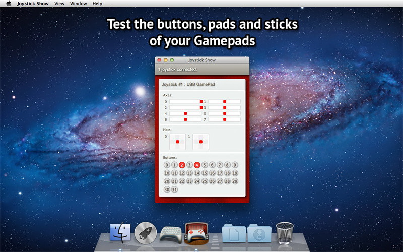 Test any joysticks or gamepads on your Mac in a very easy and nice